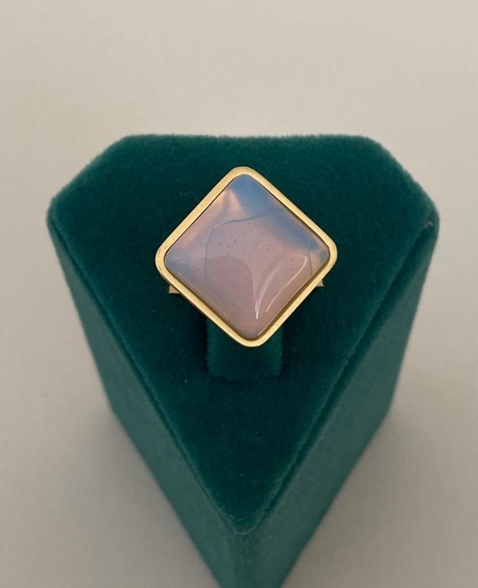 Çelik Gold Ayarlamalı Doğal Taş Kare Beyaz Yüzük