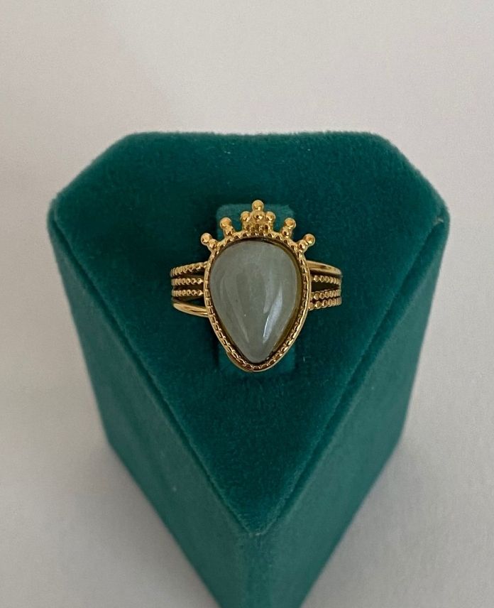 Çelik Gold Ayarlamalı Doğal Taş Yeşil Yüzük, zarafeti ve doğallığı birleştiren şık bir takıdır. Altın kaplama paslanmaz çelik malzemeden üretilen bu yüzük, yeşil doğal taşla bezenmiş olup her parmağa mükemmel uyum sağlar. Yeşil taşın huzur veren rengi, yüzüğe hem estetik bir derinlik katar hem de enerjik bir dokunuş sunar.