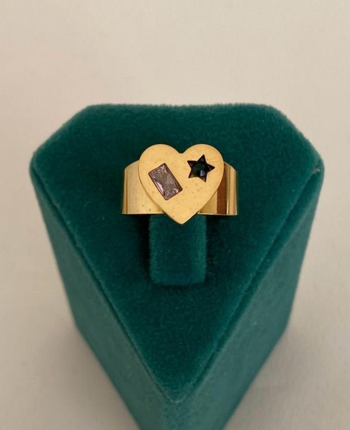 Çelik Gold Ayarlamalı Kalp Yıldız Taşlı Yüzük