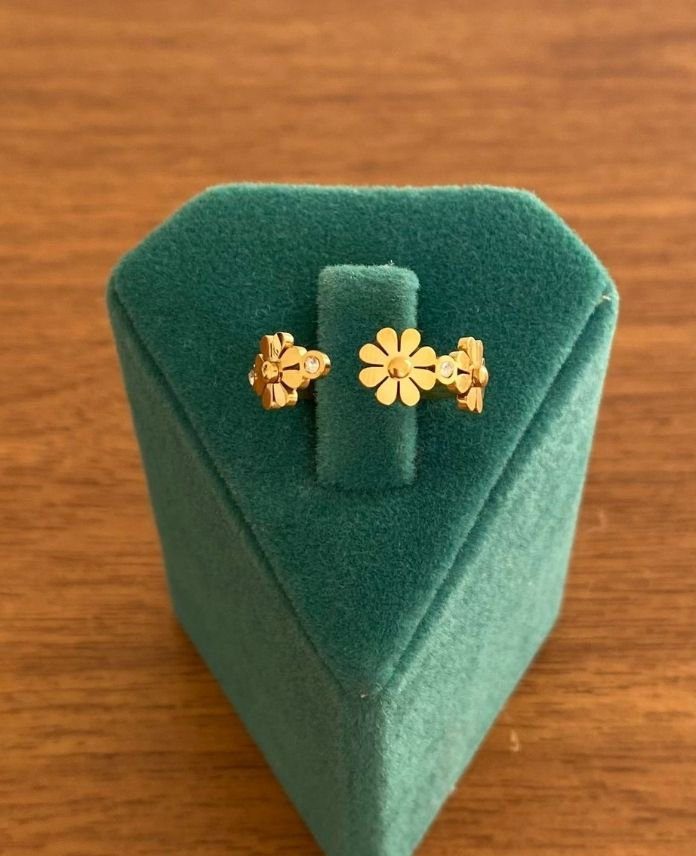 Çelik Gold Ayarlamalı Papatyalı Yüzük, zarif ve şık tasarımı ile takı koleksiyonunuzda yer almayı hak eden bir parça. Ayarlanabilir yüzük rahatlığı ile her parmağa uyum sağlar, bu da onu çok yönlü ve pratik bir aksesuar yapar. Doğal ve zarif takılar sevenler için mükemmel bir seçim!