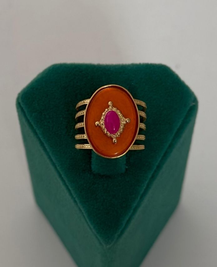 Renklerin nostaljik büyüsüyle stilinize zarif bir dokunuş katın! Çelik Gold Ayarlamalı Turuncu Pembe Vintage Yüzük, retro esintili tasarımı, sıcak turuncu ve romantik pembe tonlarıyla vintage tarzı yeniden yorumluyor. Gold kaplamasıyla şıklığı ön plana çıkaran bu yüzük, özel tasarımıyla göz kamaştırır.