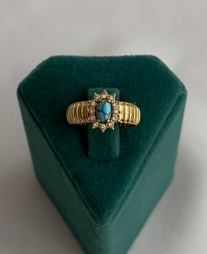 Çelik Gold Ayarlanabilir Çiçek Mavi Doğaltaş Yüzük