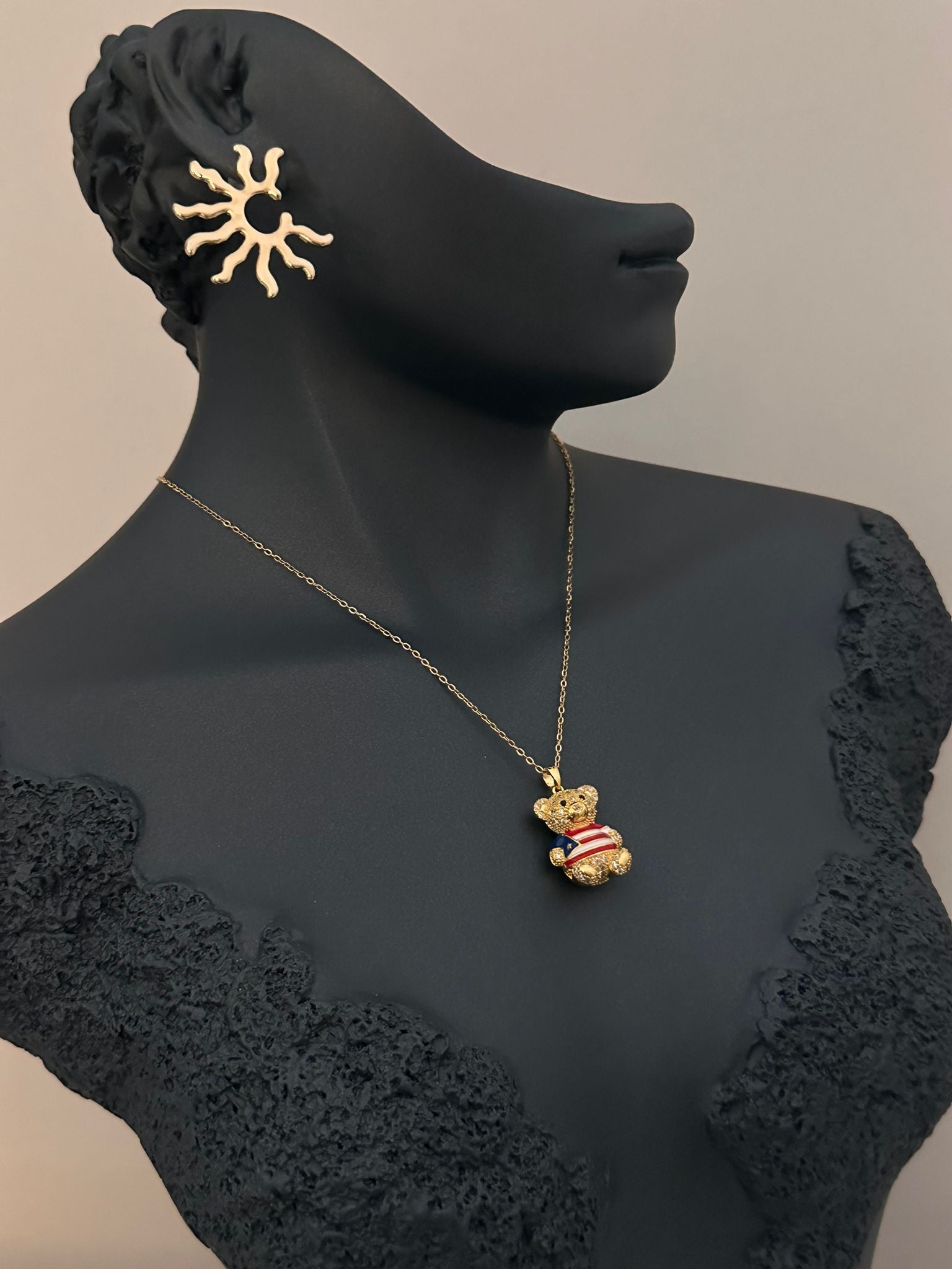 Çelik Gold Bubble Ayıcık Renkli Kolye