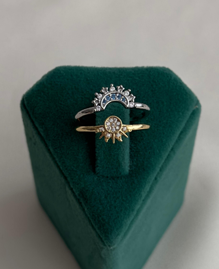 Çelik gold silver ayarlanabilir iki adet ay güneş yüzük, modern ve şık tasarımıyla dikkat çeker. Altın ve gümüş tonlarında sunulan bu yüzükler, ay ve güneş motifleriyle mistik bir hava yaratır. Ayarlanabilir yapısı sayesinde her parmağa uyum sağlar, konforlu ve uzun süreli kullanım sunar. Hem günlük hem de özel günlerde şıklığınızı tamamlayacak ideal bir aksesuardır.