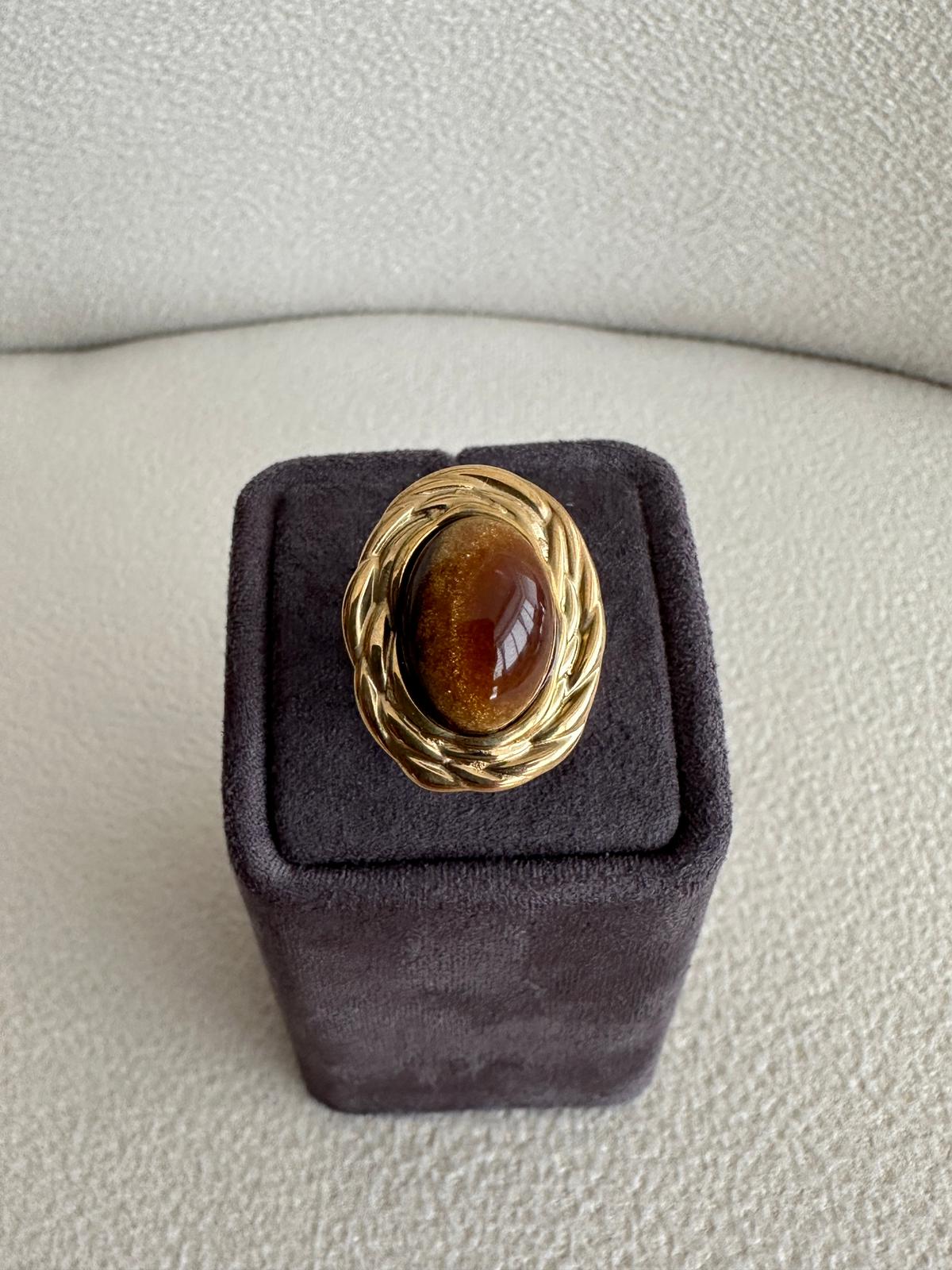 Elips Kaplangözü Model Çelik Gold Yüzük