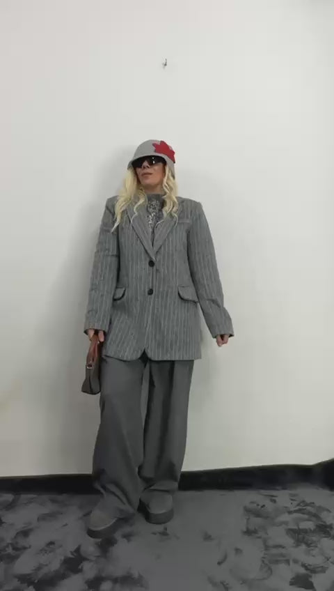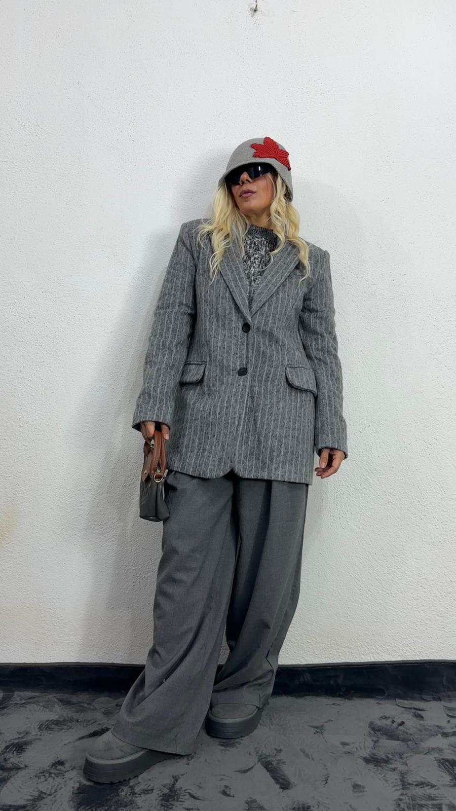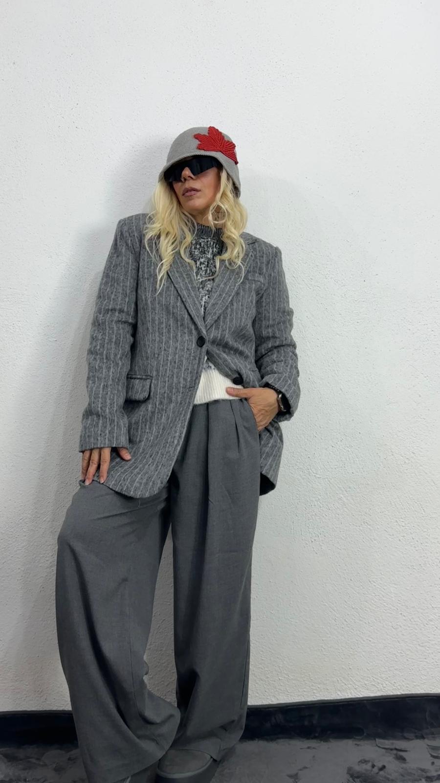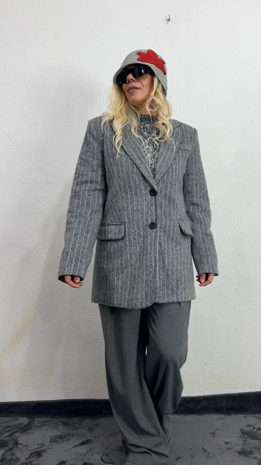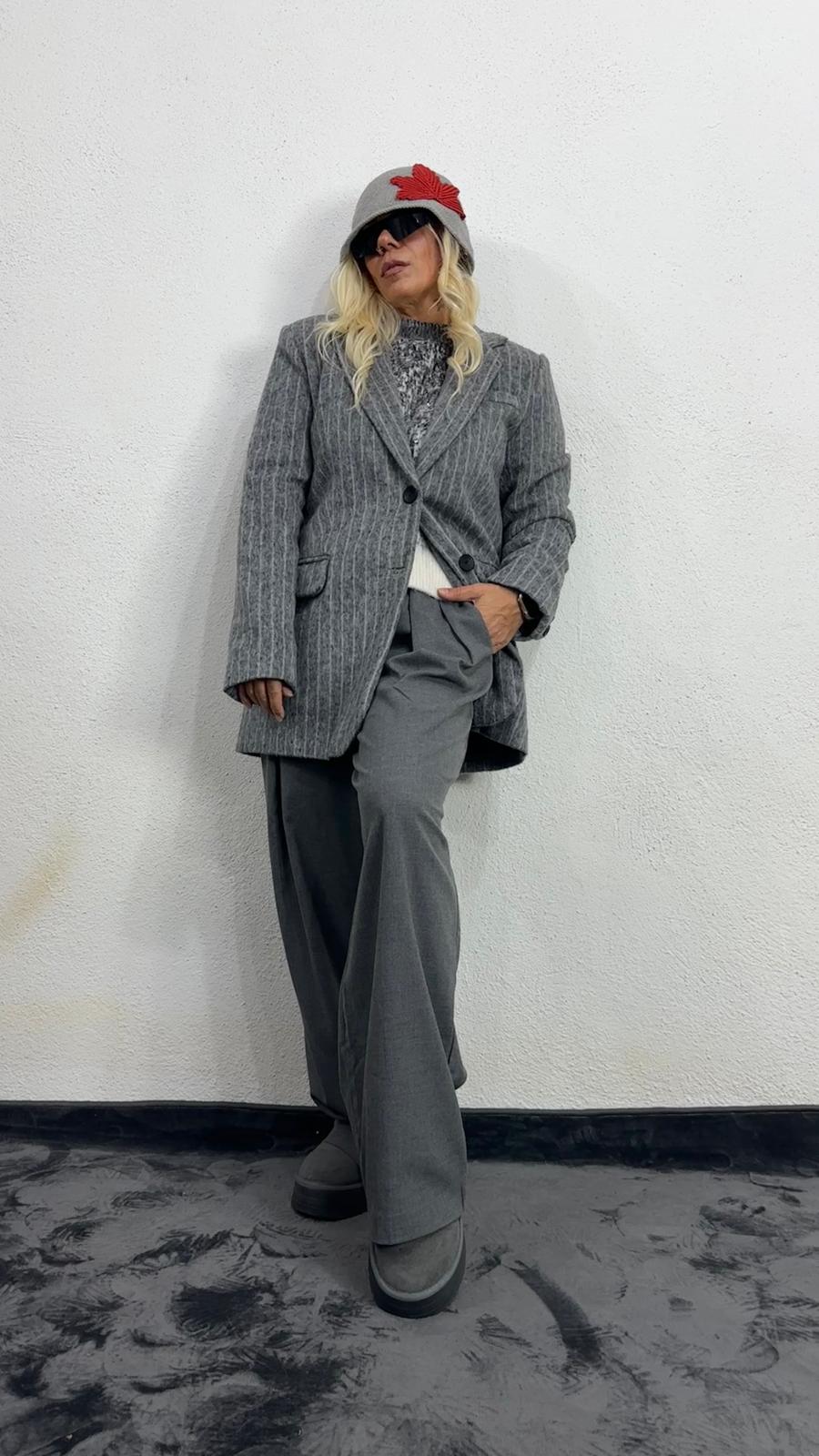 Gri Kırçıllı Kaşe Ceket