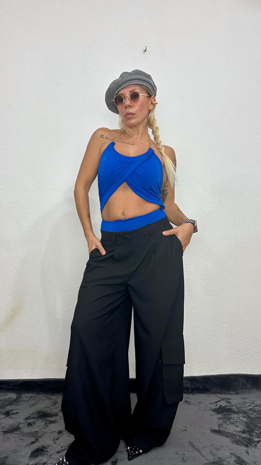 Body suit tasarımı sayesinde bluzunuz asla bozulmaz, kombinleriniz kusursuz kalır. Gömlek pantolonlarla ofis şıklığına, deri eteklerle gece stiline kolayca uyum sağlar. Sakin mavi tonu, ferah ve modern bir görünüm kazandırır.