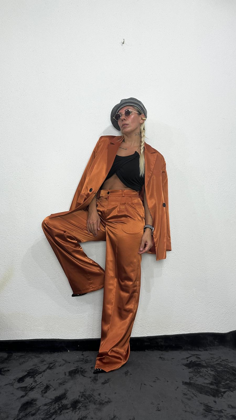 NuNu By Aura Bakır Saten Pileli Pantolon