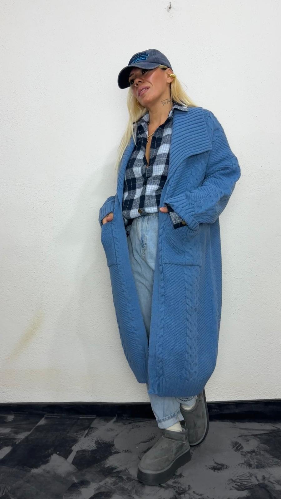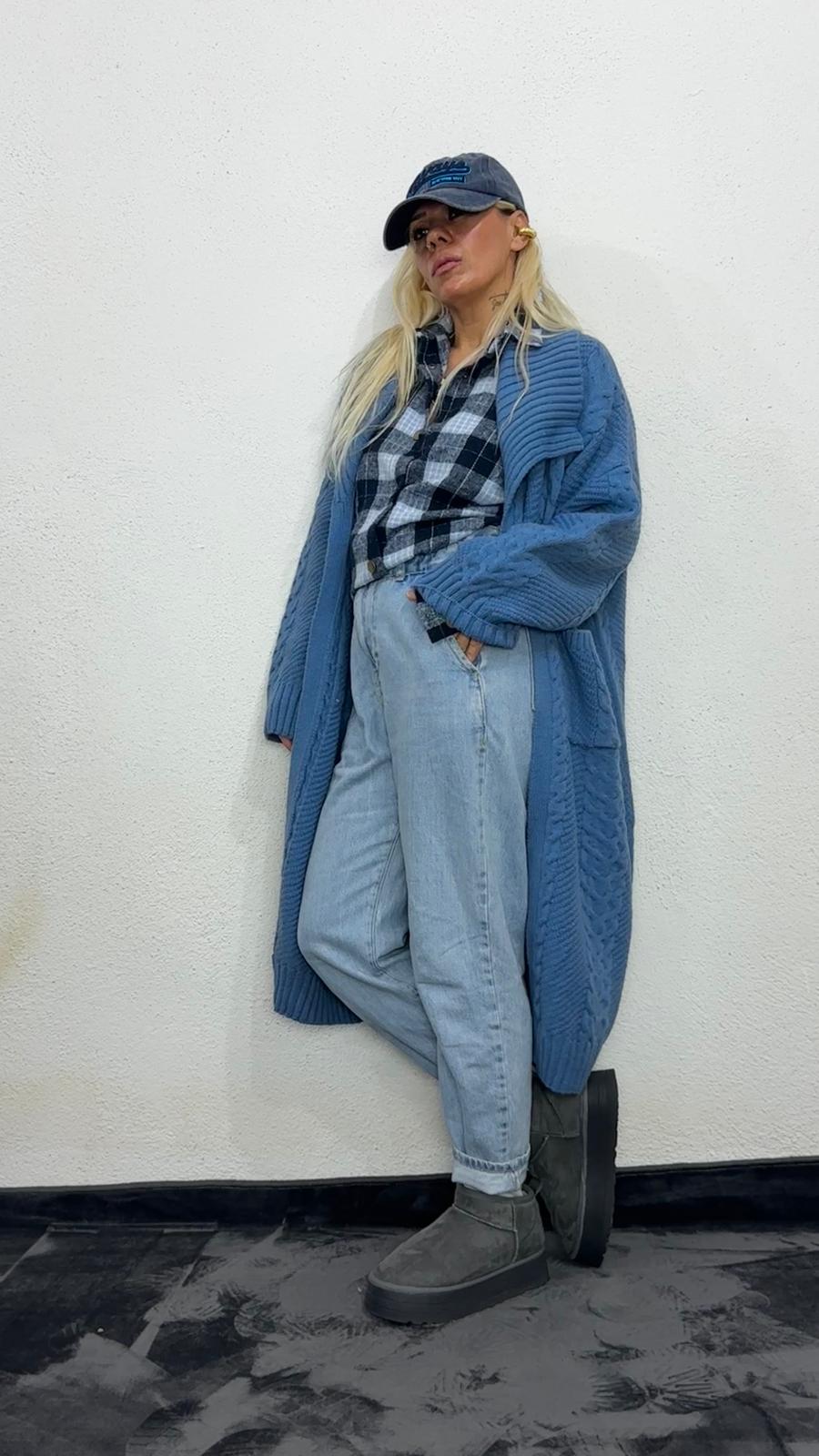 Nunu By Balıksırtı Desenli İndigo Oversize Hırka, zarif balıksırtı deseni ve göz alıcı indigo rengiyle tarzınıza şıklık katacak. Oversize kesimi, rahat ve konforlu bir kullanım sunarken, şık ve zarif tasarımı her türlü kombinle uyum sağlar. Günlük yaşamda rahatlıkla kullanabileceğiniz bu hırka, şık bir dış giyim parçası olarak da öne çıkıyor. Her mevsime uygun, modern ve zarif bir seçenek.