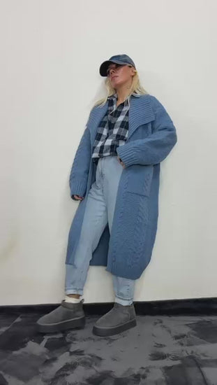 Nunu By Balıksırtı Desenli İndigo Oversize Hırka