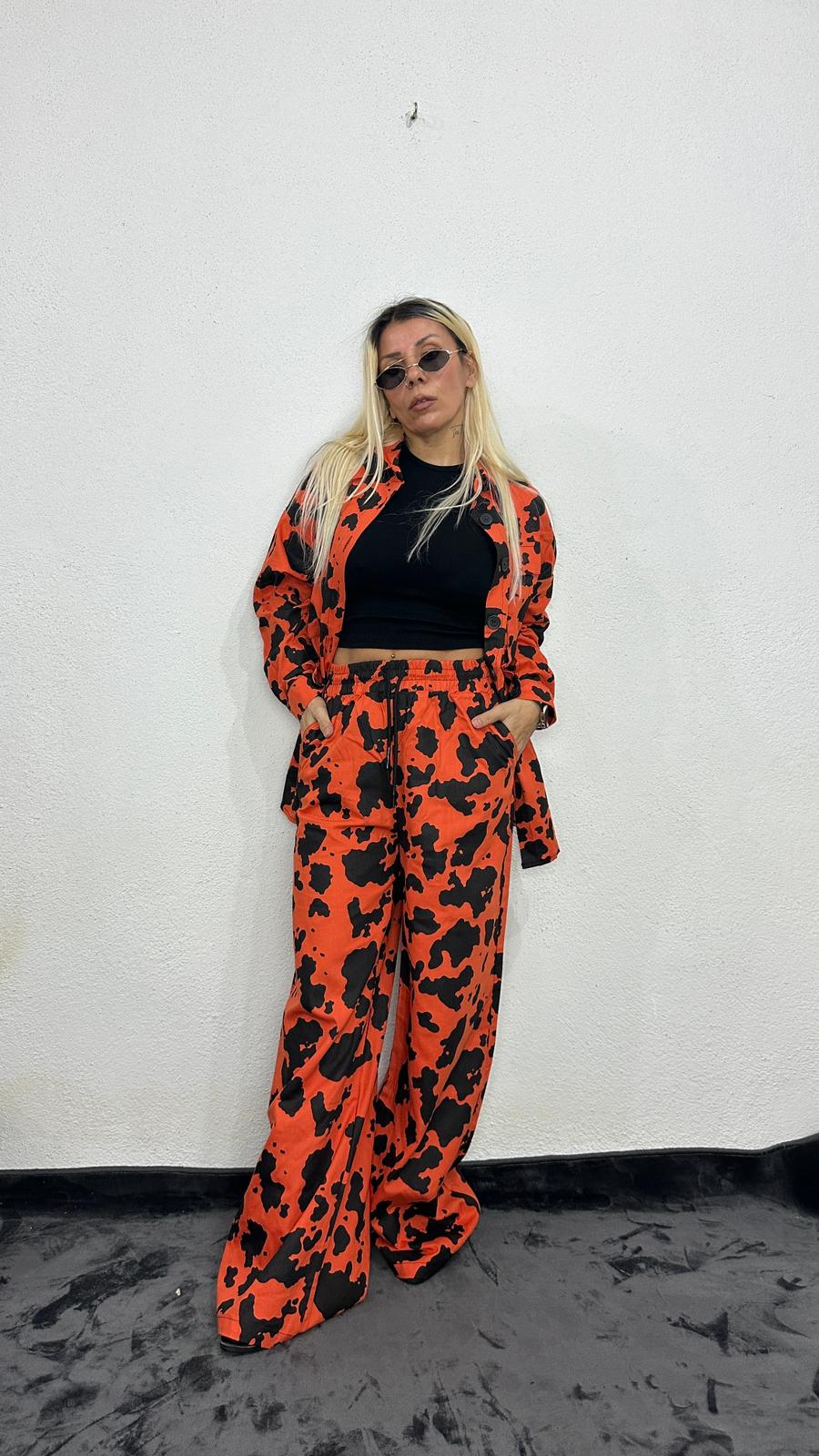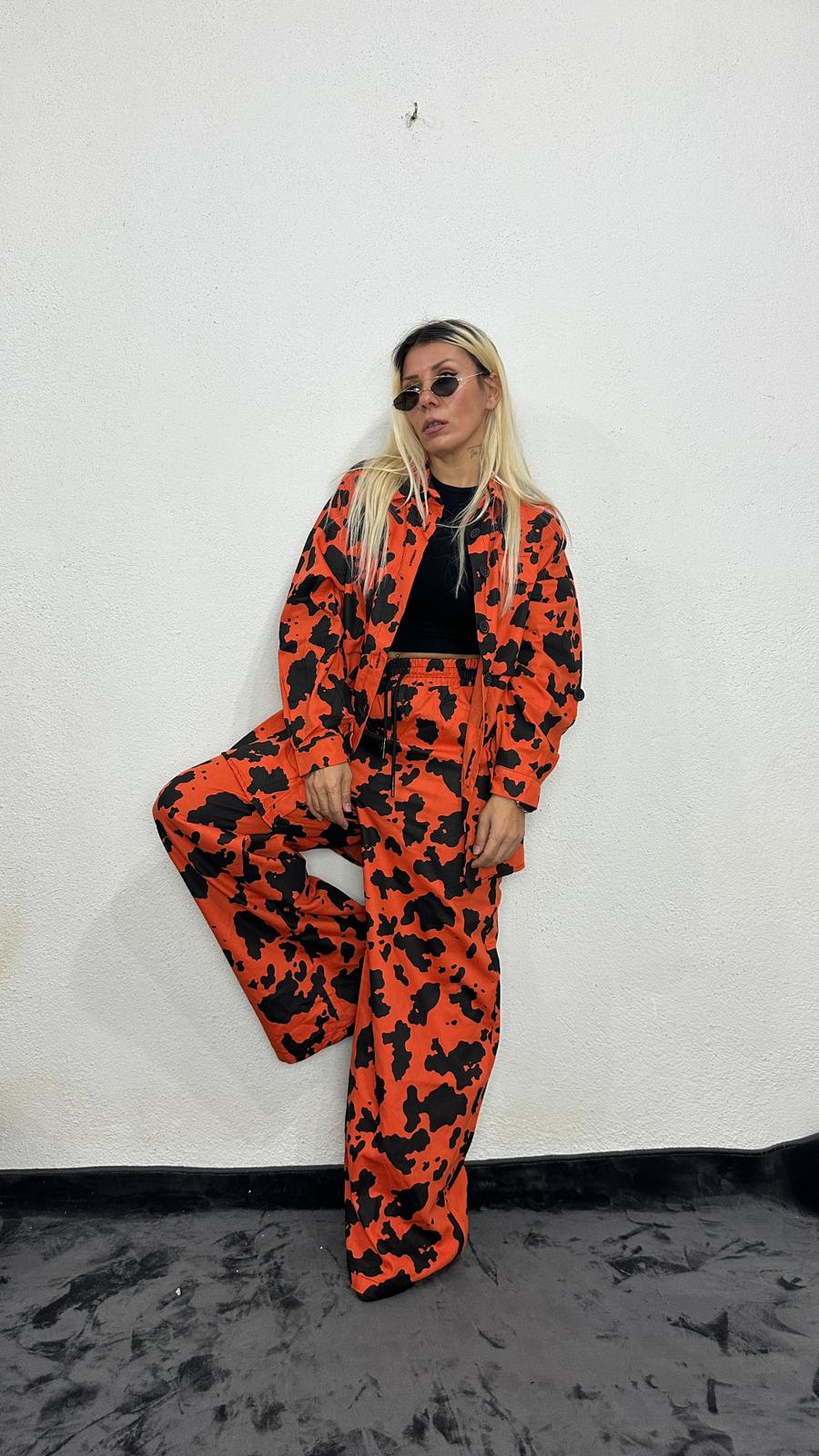 NuNu By İnek Desen Oversize Turuncu Gabardin Takım