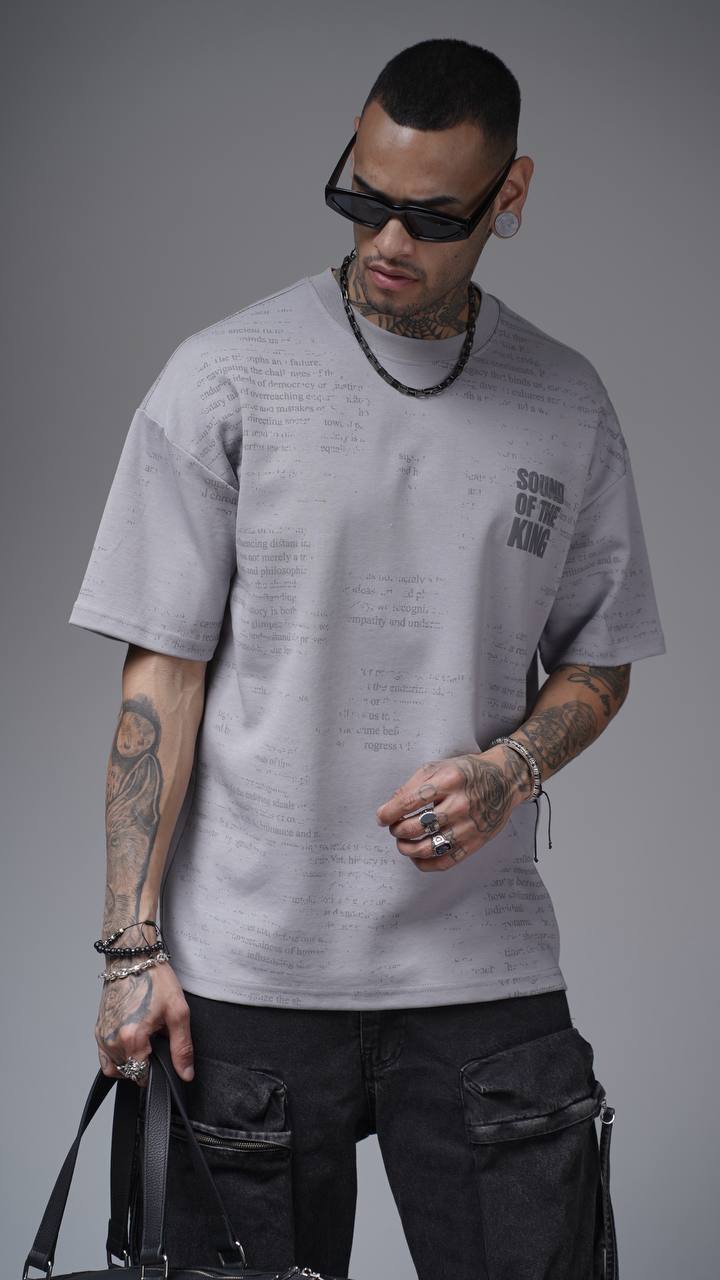 NuNu By King Gri Double Face Baskılı Oversize Tshirt