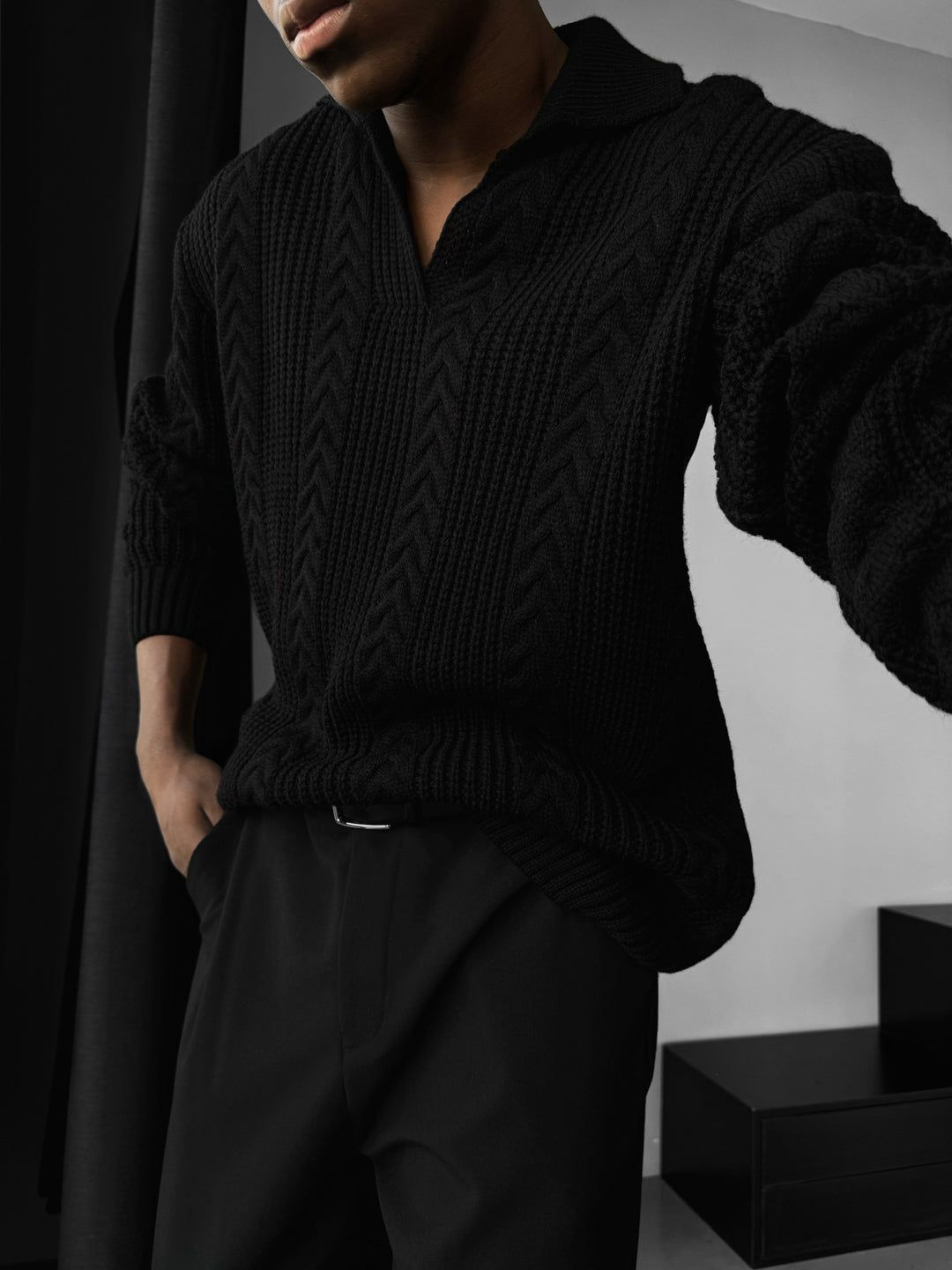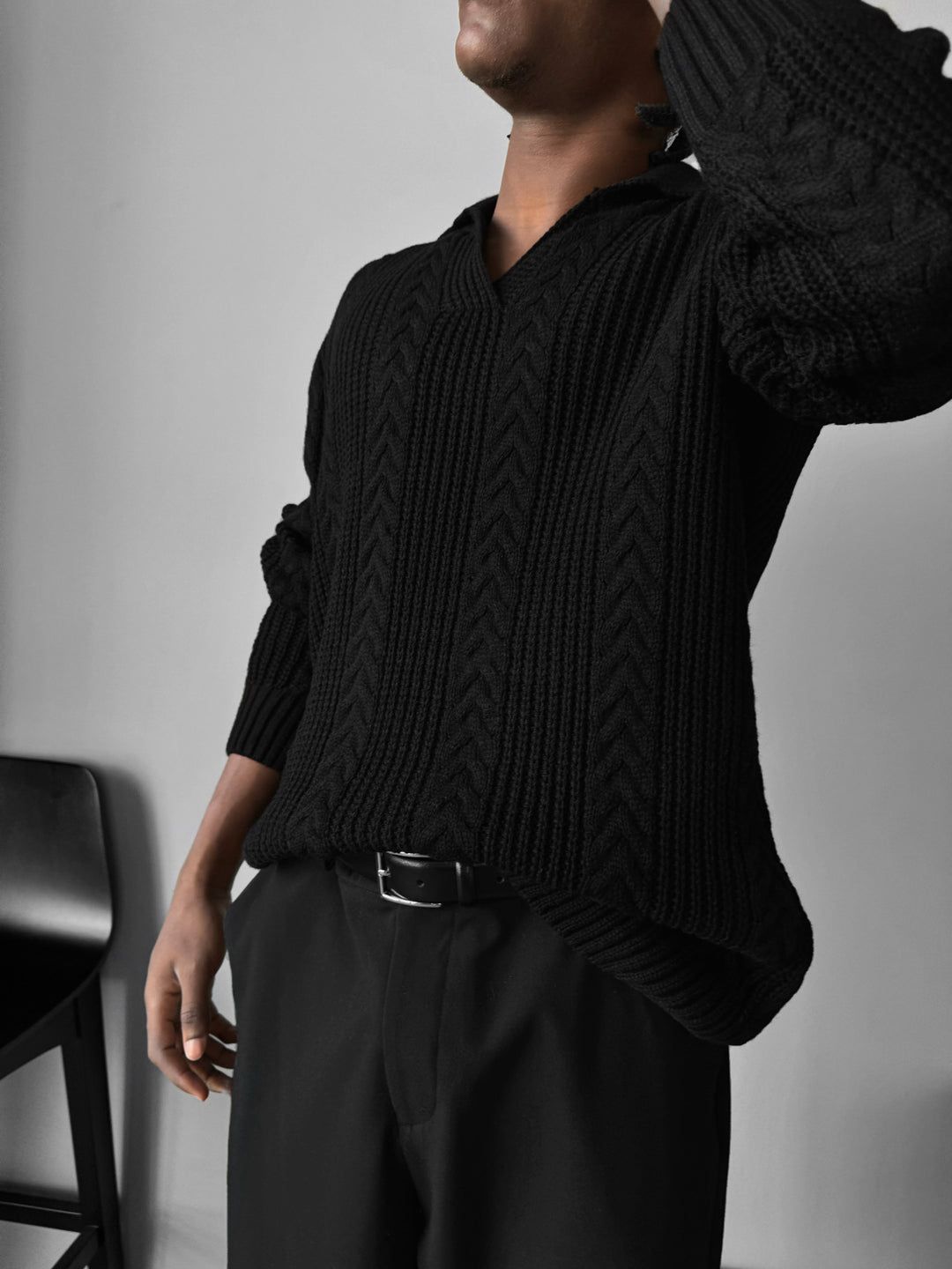 Tarzından ödün vermeden şıklık arayan erkekler için tasarlanan NuNu By Lagos Balık Sırtı V Yaka Erkek Siyah Kazak, her ortamda kullanıma uygun zamansız bir parçadır.