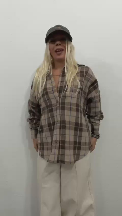 Model: Oversize retro oduncu gömlek