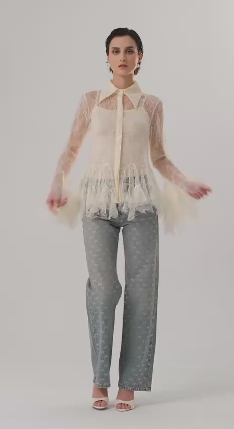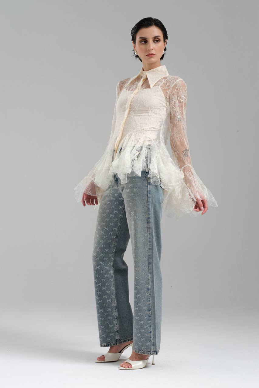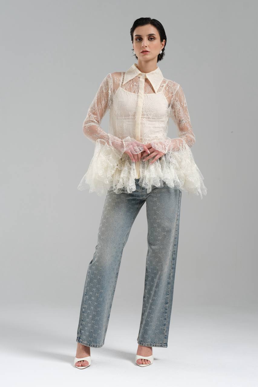 NuNu By TW Ekru Dantel Gömlek