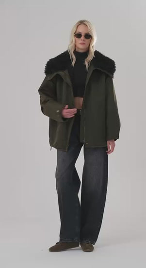 NuNu By TW Haki Peluş Yaka Kadın Parka