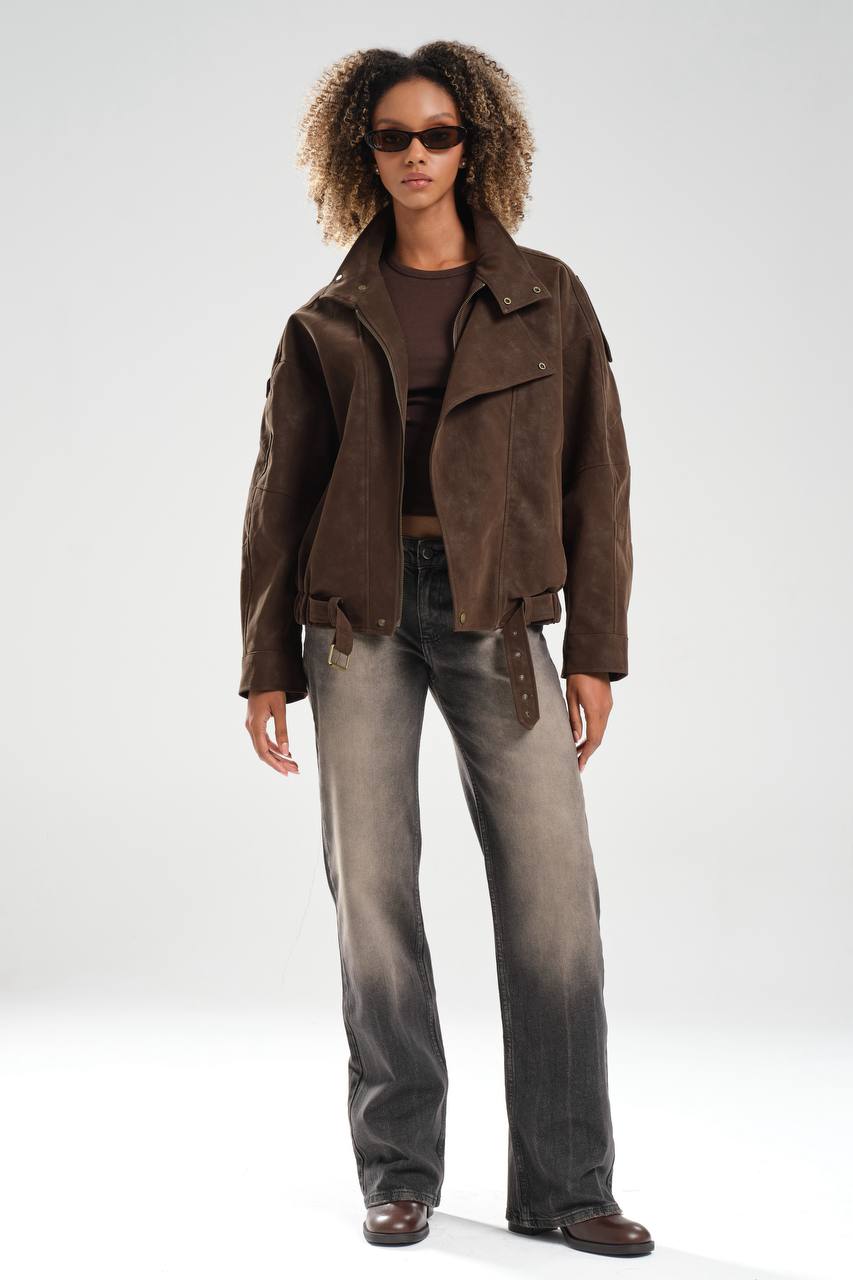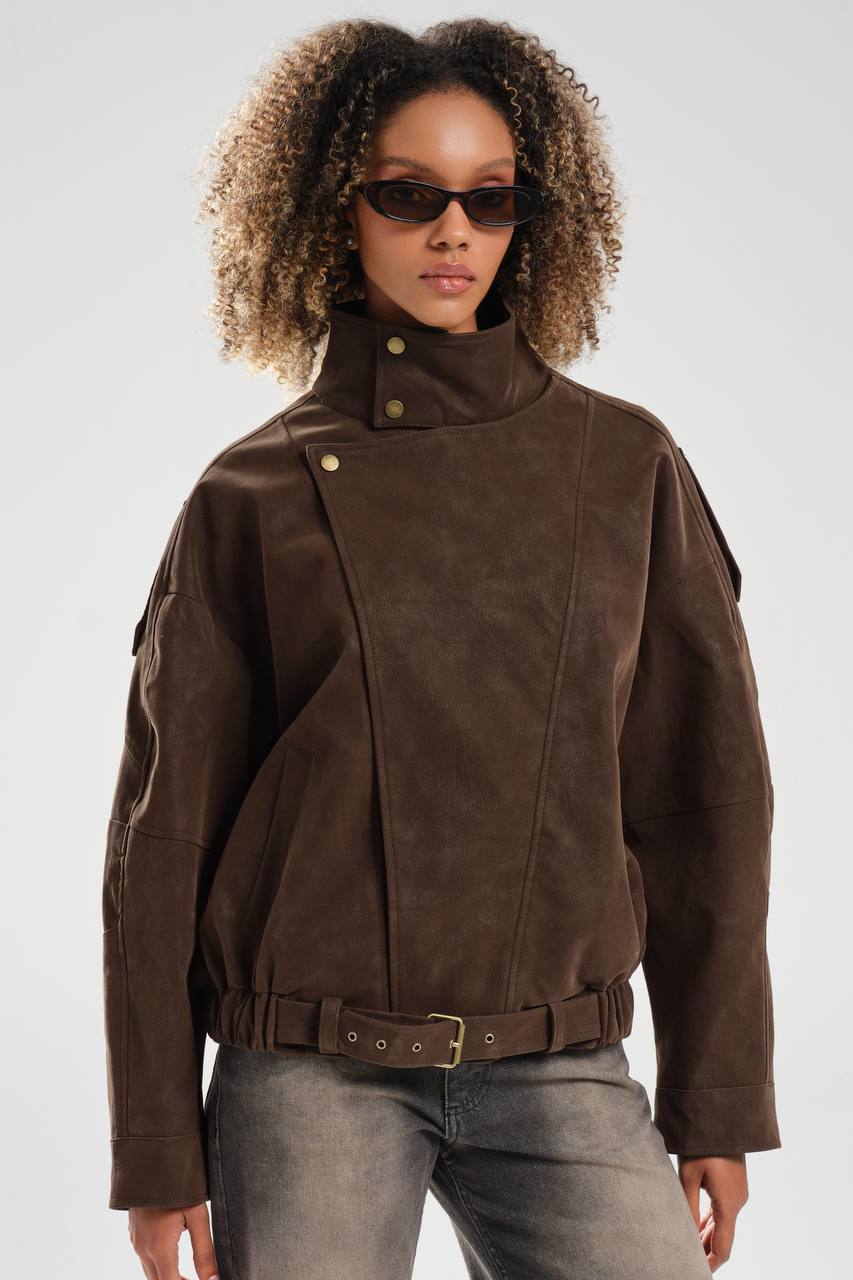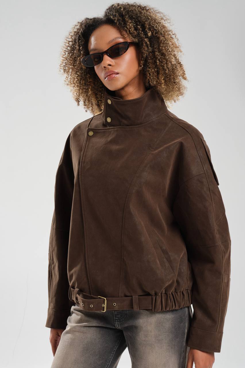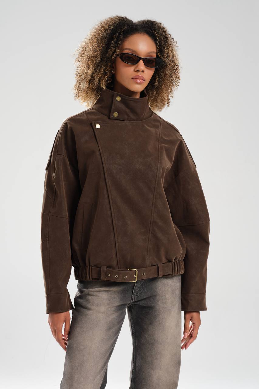 NuNu By TW Kahverengi Kadın Süet Bomber Ceket