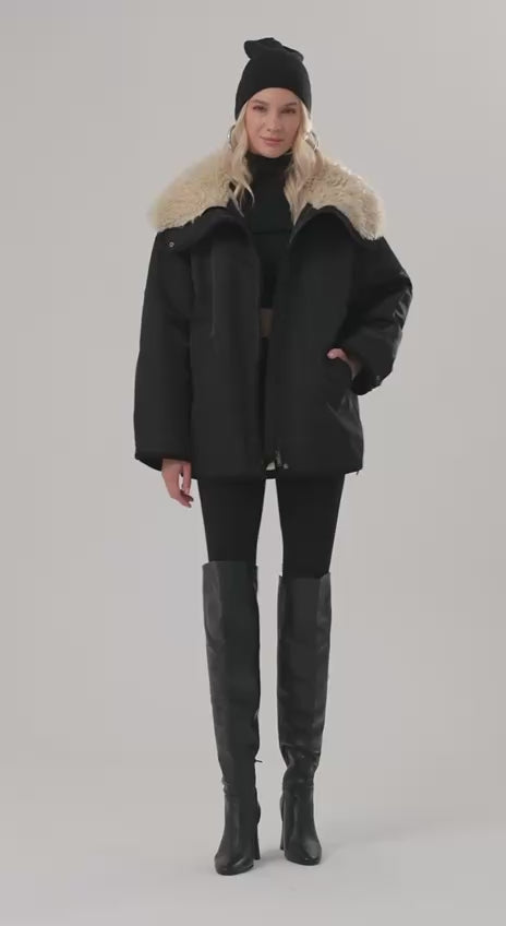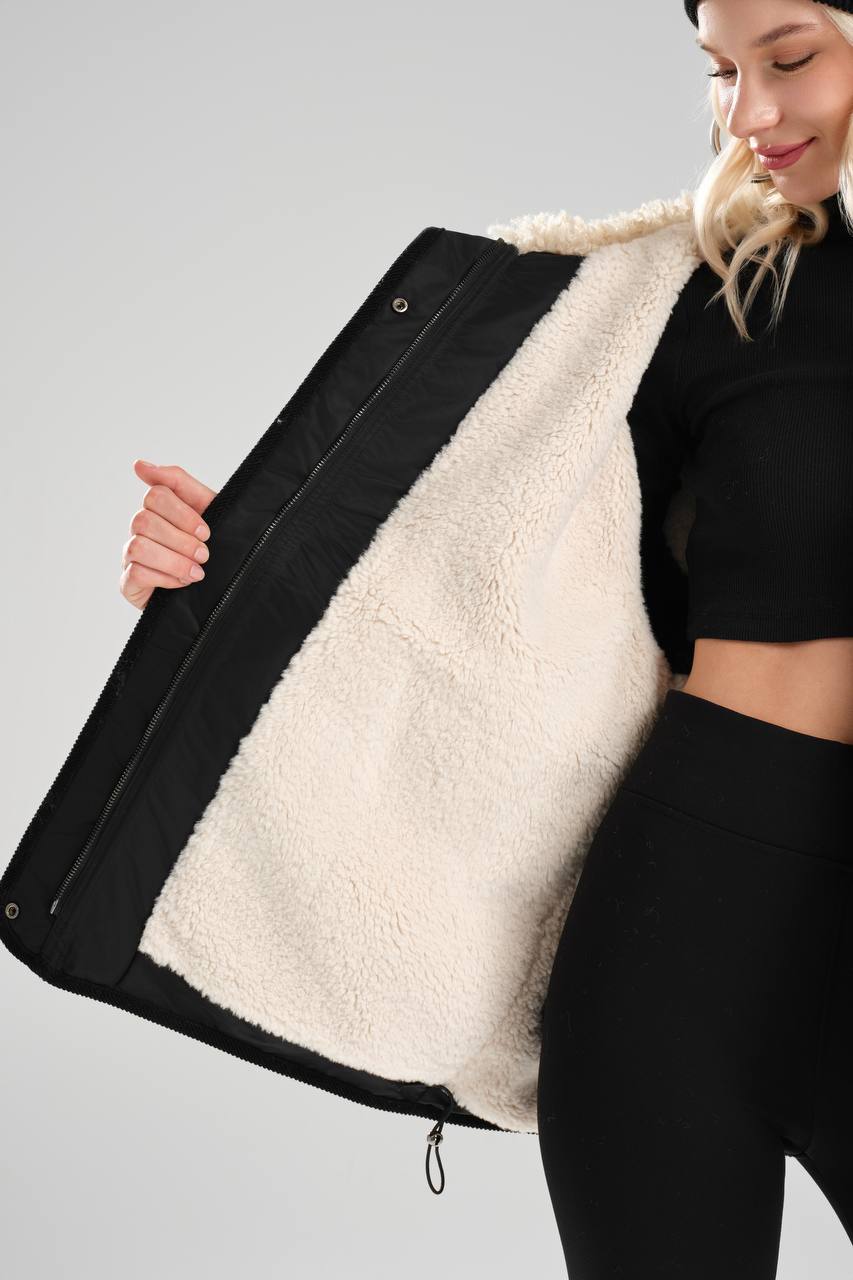NuNu By TW Siyah Peluş Yaka Kadın Parka