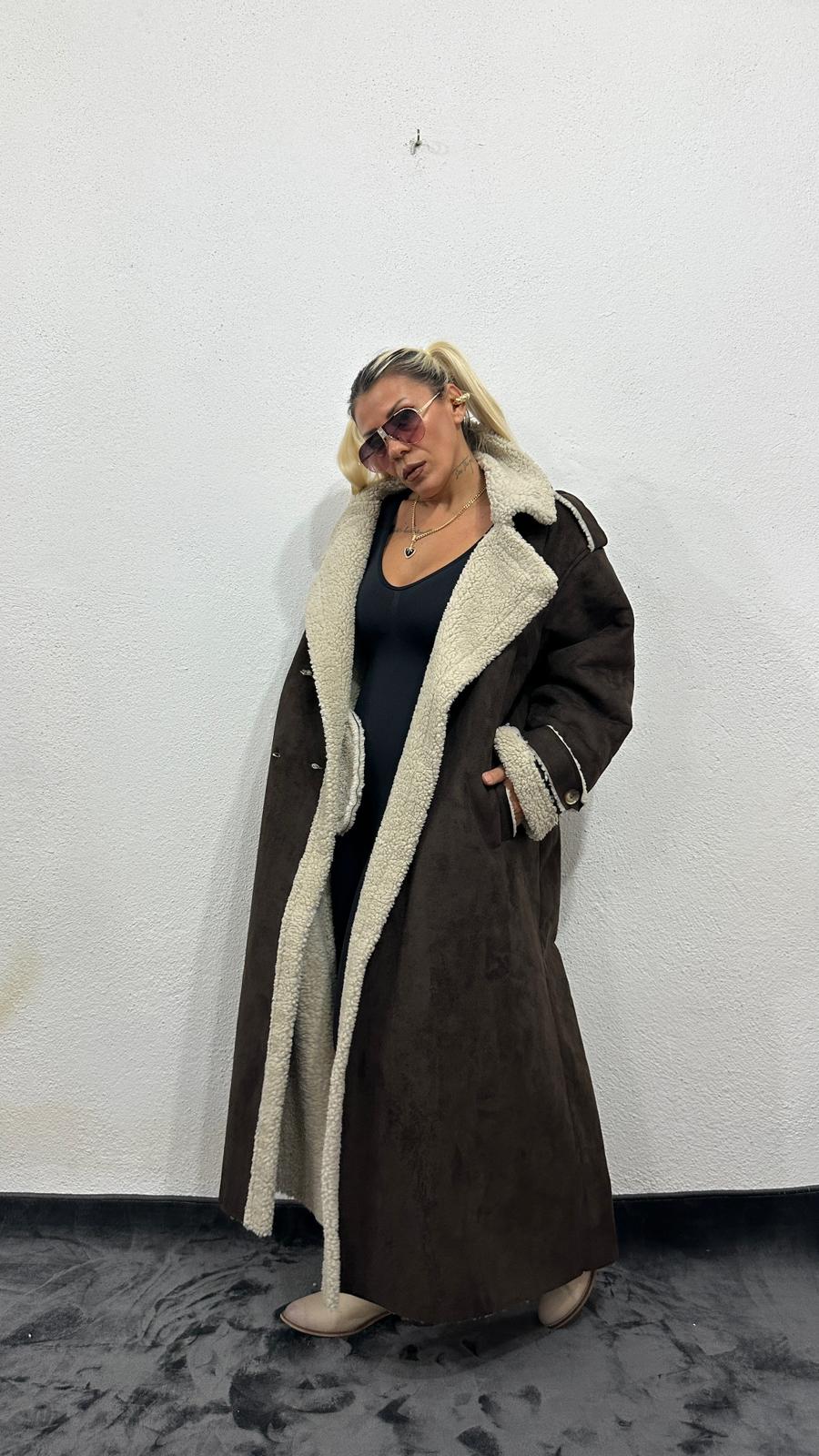 NuNu By Vintage Nubuk Kahverengi Teddy Uzun Kaban