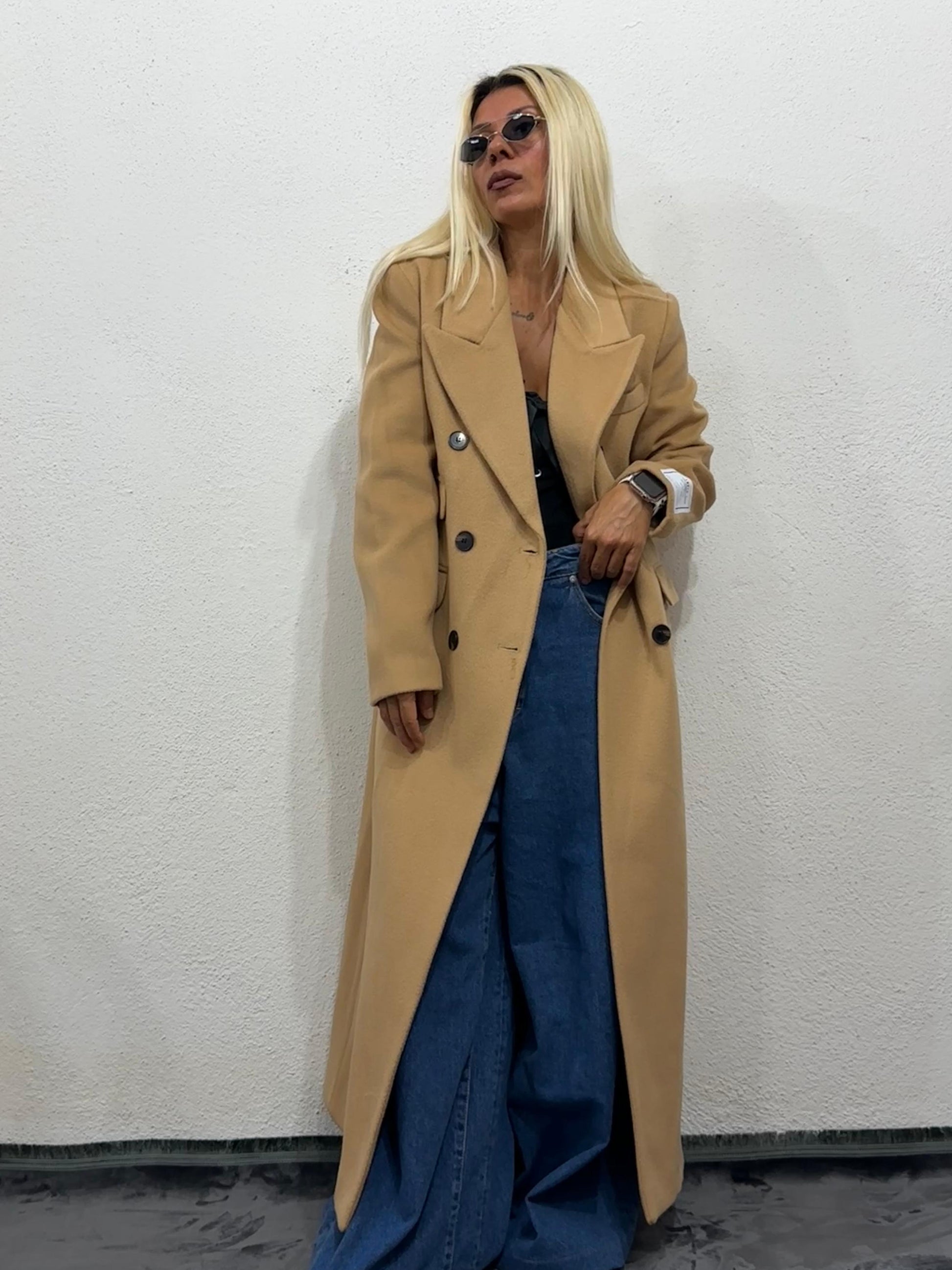 NuNu Camel Özel Dokulu Ultra Premium Kaşe Kaban
