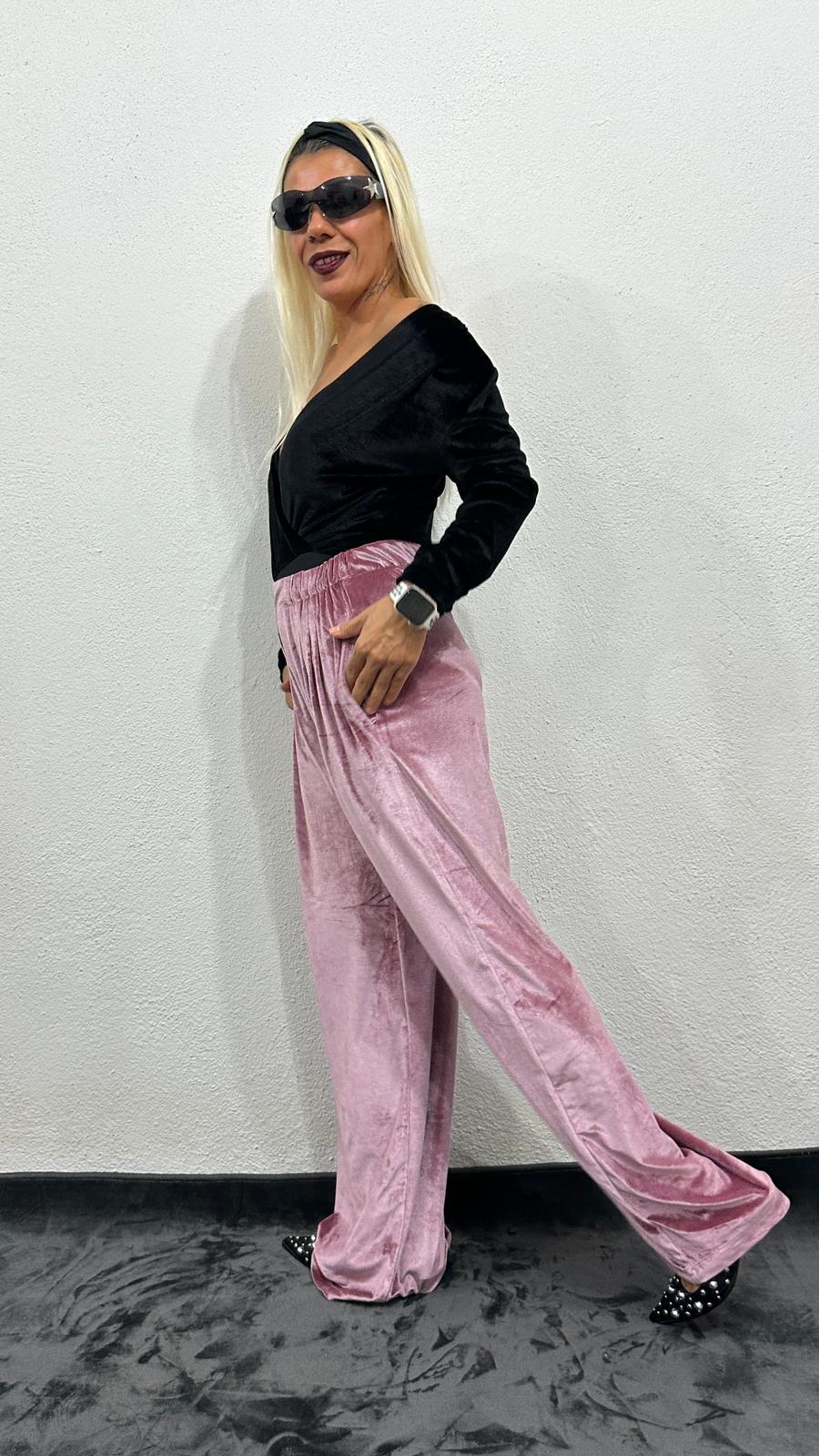 Özel anlarınızı daha da şık kılacak NuNu Plush Pembe Kadife Pantolon ile zarif bir dokunuş kazanın! Pembe rengi, stilinizi enerjik ve zarif kılar. Kadife kumaşın lüks hissiyatı, bu pantolonu sadece şık değil aynı zamanda son derece rahat hale getiriyor.
