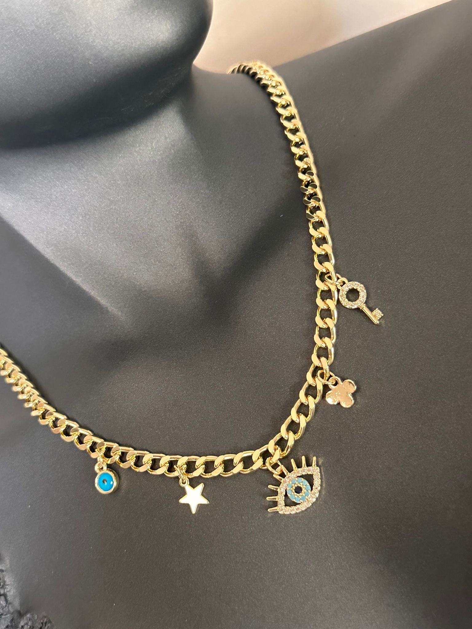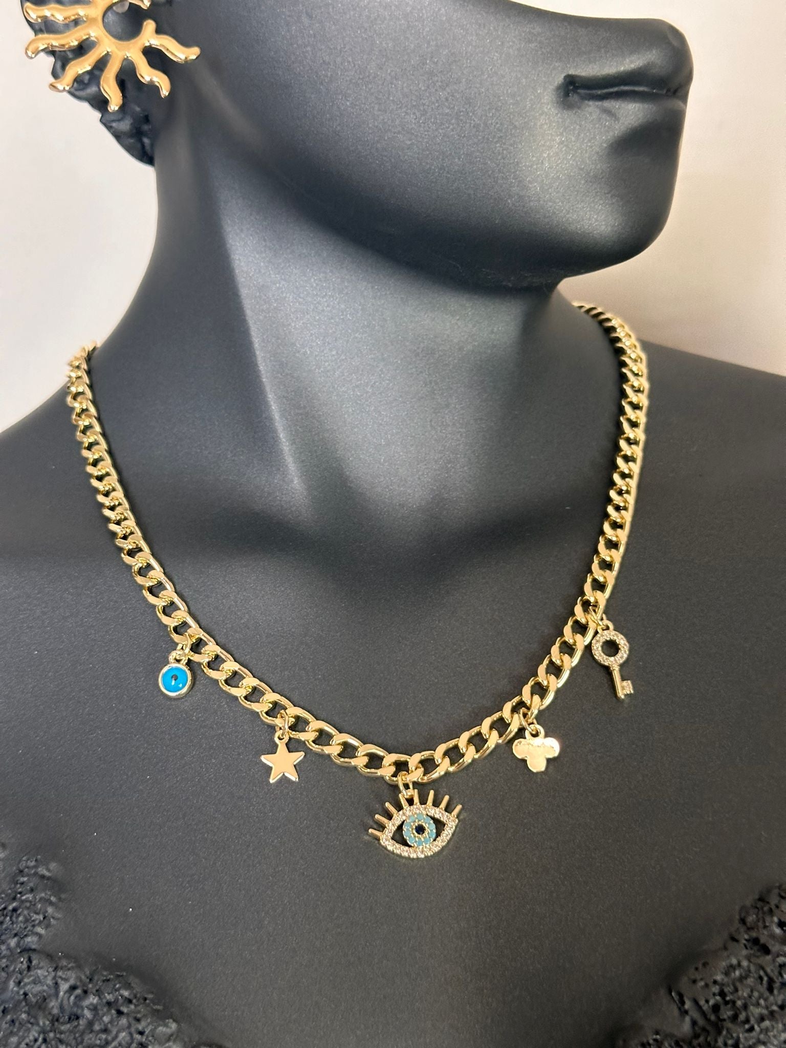 Pirinç Gold Göz Charm Kolye, nazar boncuğu sembolünü modern bir yorumla sunarak stilinize hem zarafet hem de pozitif enerji katıyor. Altın kaplama pirinç materyalden üretilen kolye, parıltılı dokusu ve göz charm detayıyla hem günlük hem de özel kombinlerin tamamlayıcısıdır.