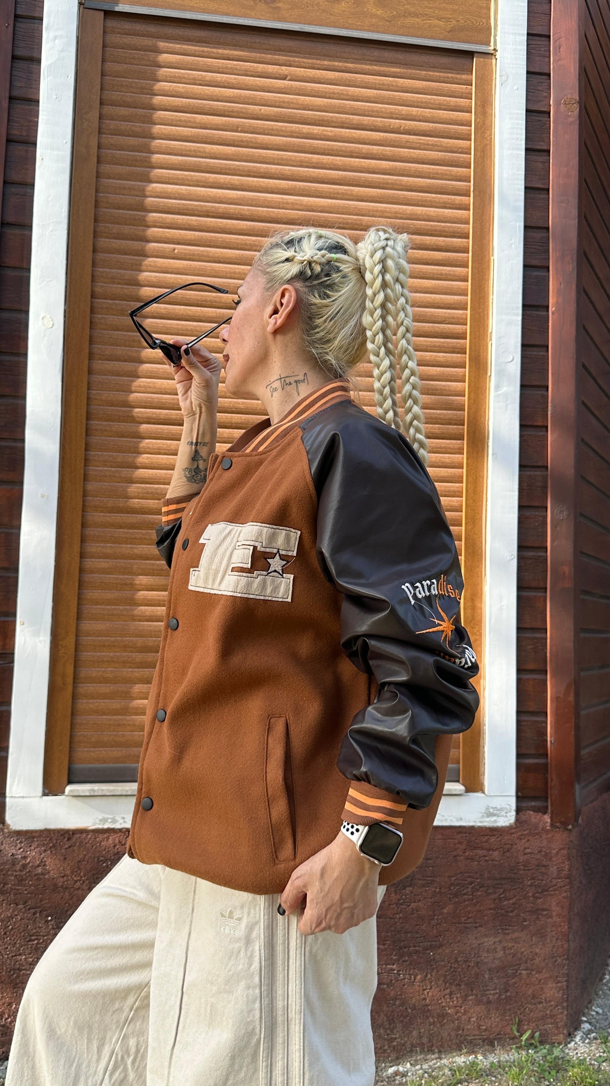 Sırtta büyük "Paradise" nakış yazı