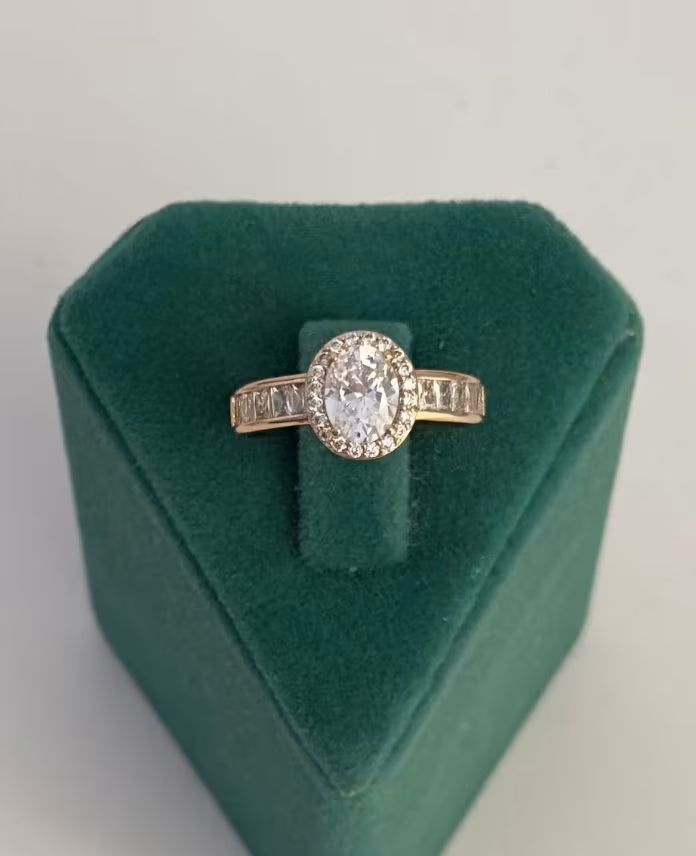 Zarif ve ışıltılı detaylarıyla göz kamaştıran Xuping Numaralı Elips Kenarları Baget Yüzük, modern şıklığı sadelikle buluşturuyor. Baget kesim taşlarla süslenmiş elips formundaki kenar detayları, bu yüzüğü özel ve dikkat çekici kılıyor.
